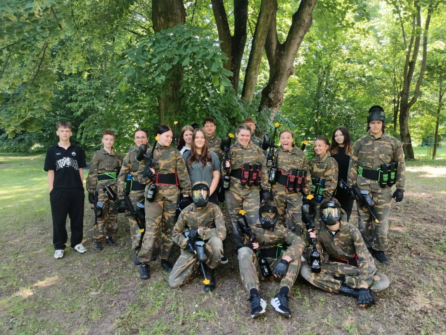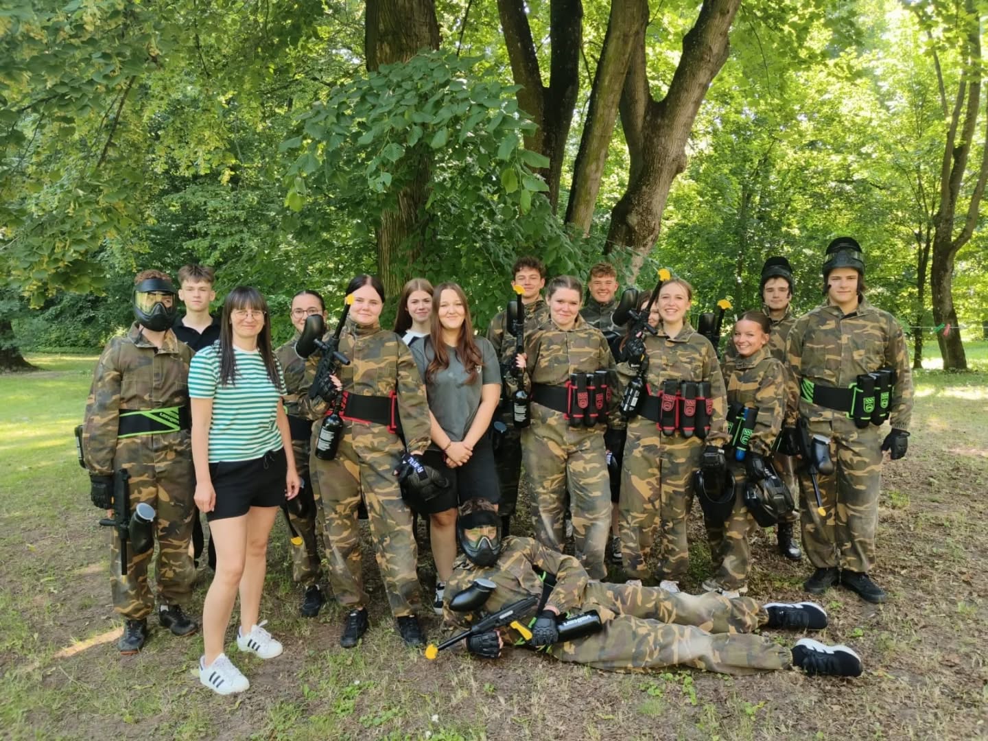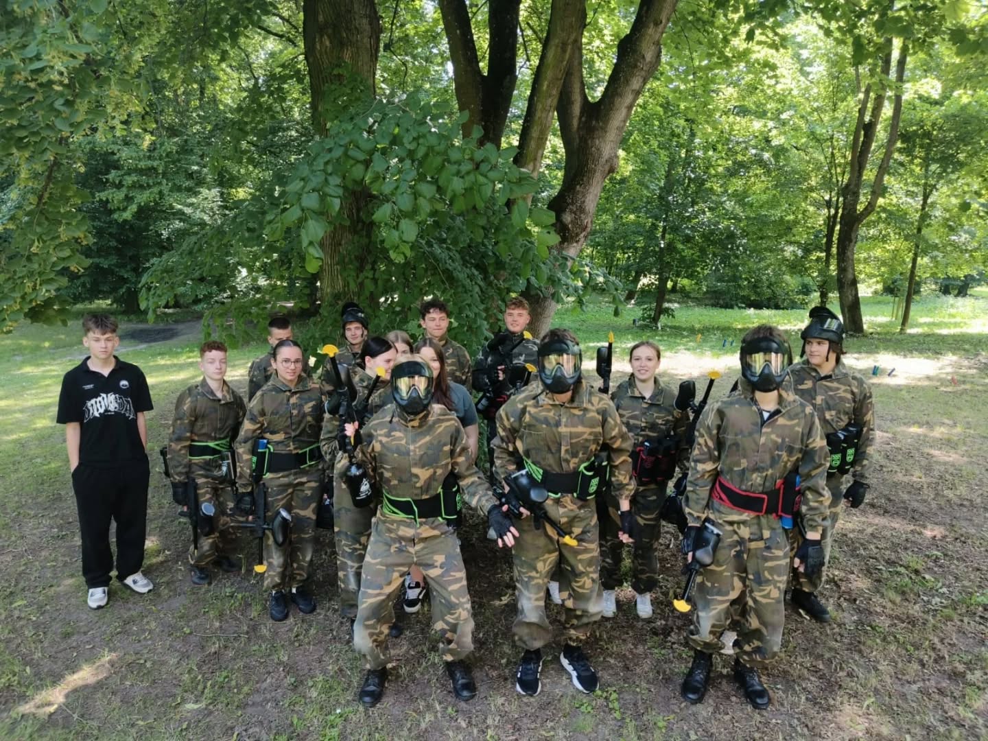 Główne atrakcje dnia to rozgrywki paintballowe oraz wspólne ognisko z pieczeniem kiełbasek. Zabawa była doskonała. Spędziliśmy czas na rozmowach, śpiewaniu i śmiechu. Wyjście okazało się świetnym sposobem na spędzenie czasu poza szkołą.