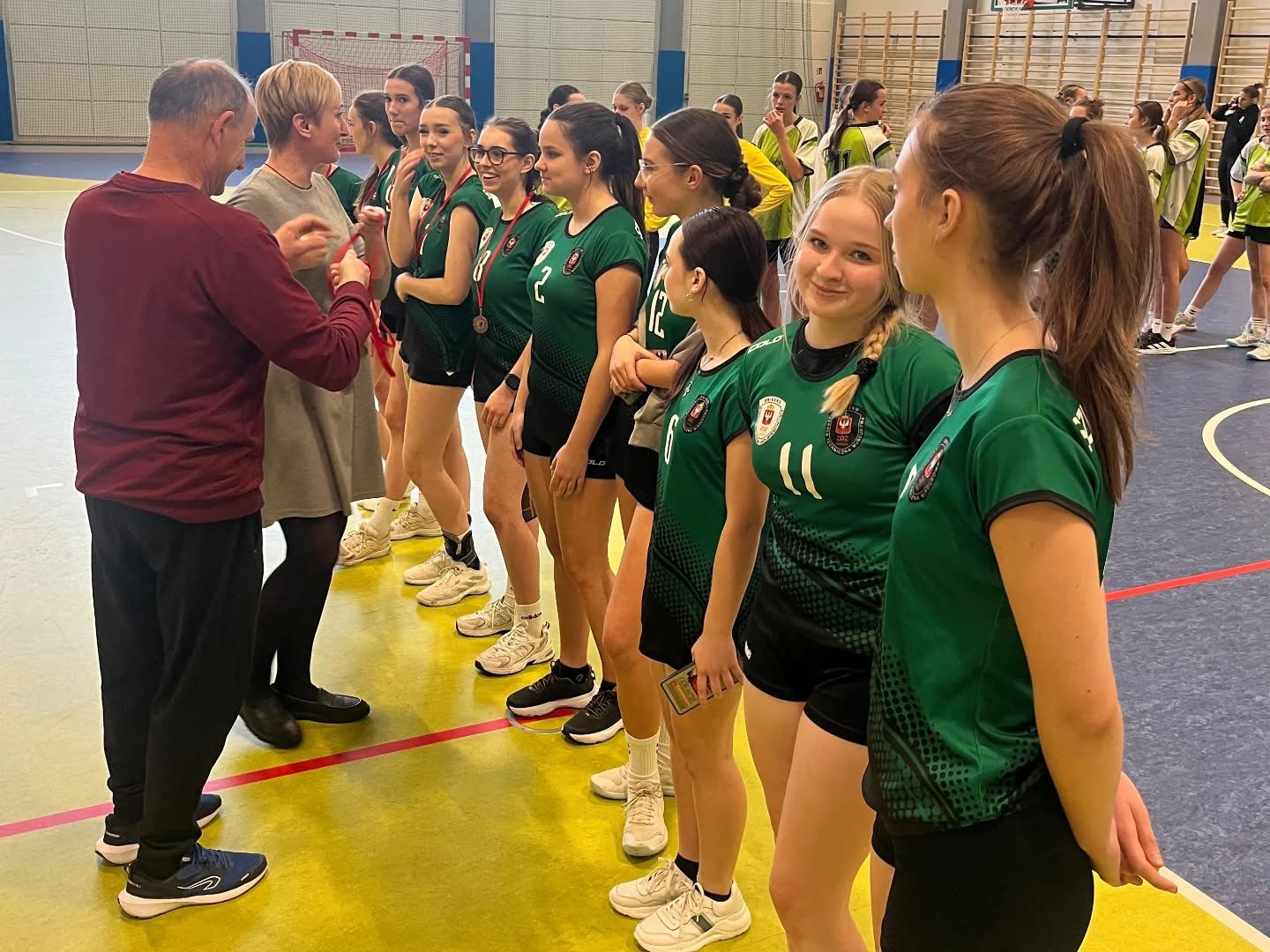 W dniu 6.11.2025 odbyły się Mistrzostwa Powiatu Gnieźnieńskiego Szkół Ponadpodstawowych w Piłce Ręcznej Dziewcząt. Do rywalizacji przystąpiło sześć zespołów. Mundurowe zostały rozstawione w I grupie, w której zmierzyły się z I LO wygrywając (13-10) i ZSPU wygrywając (9-1).Następnie rozegraliśmy półfinał z IILO (późniejszym zwyciężczyniom zawodów) ulegając (9-7). Mundurowe zagrały o trzecie miejsce spotykając się w rywalizacji ponownie z I LO, gdzie o po zaciętym pojedynku (12-12) o wyniku spotkania i tym samym miejscu na podium musiały zadecydować rzuty karne,w których wygrywamy (2-0). Tym samym zdobywamy trzecie miejsce i gratulujemy zwycięzcy zawodów IILO Gnieźnie.