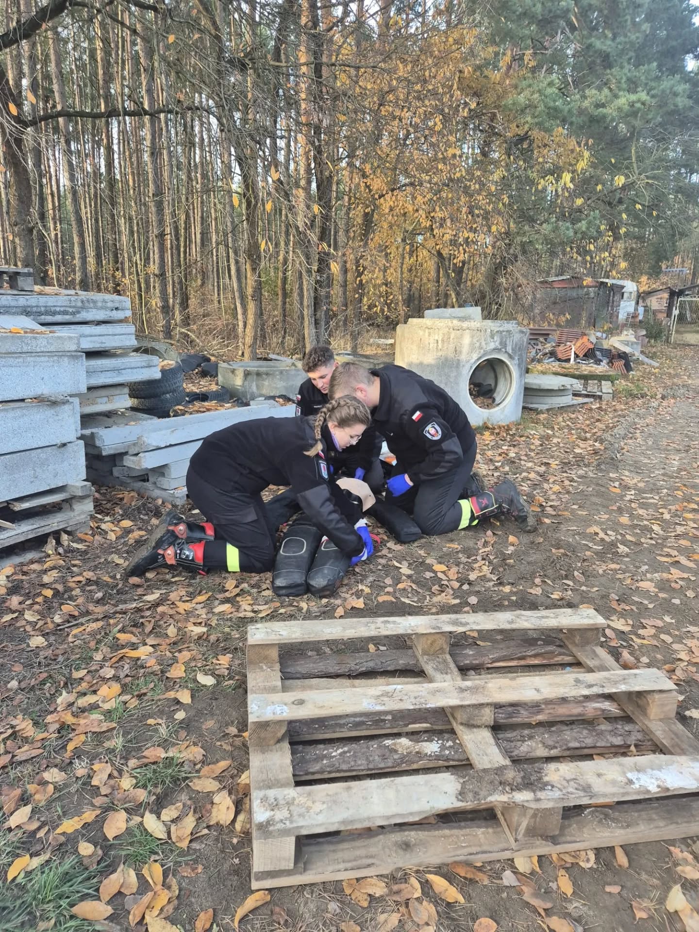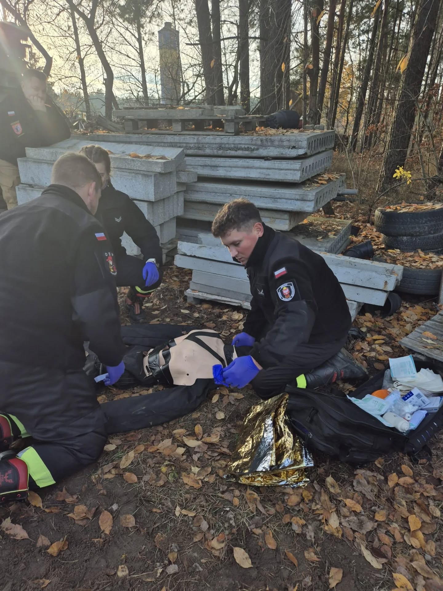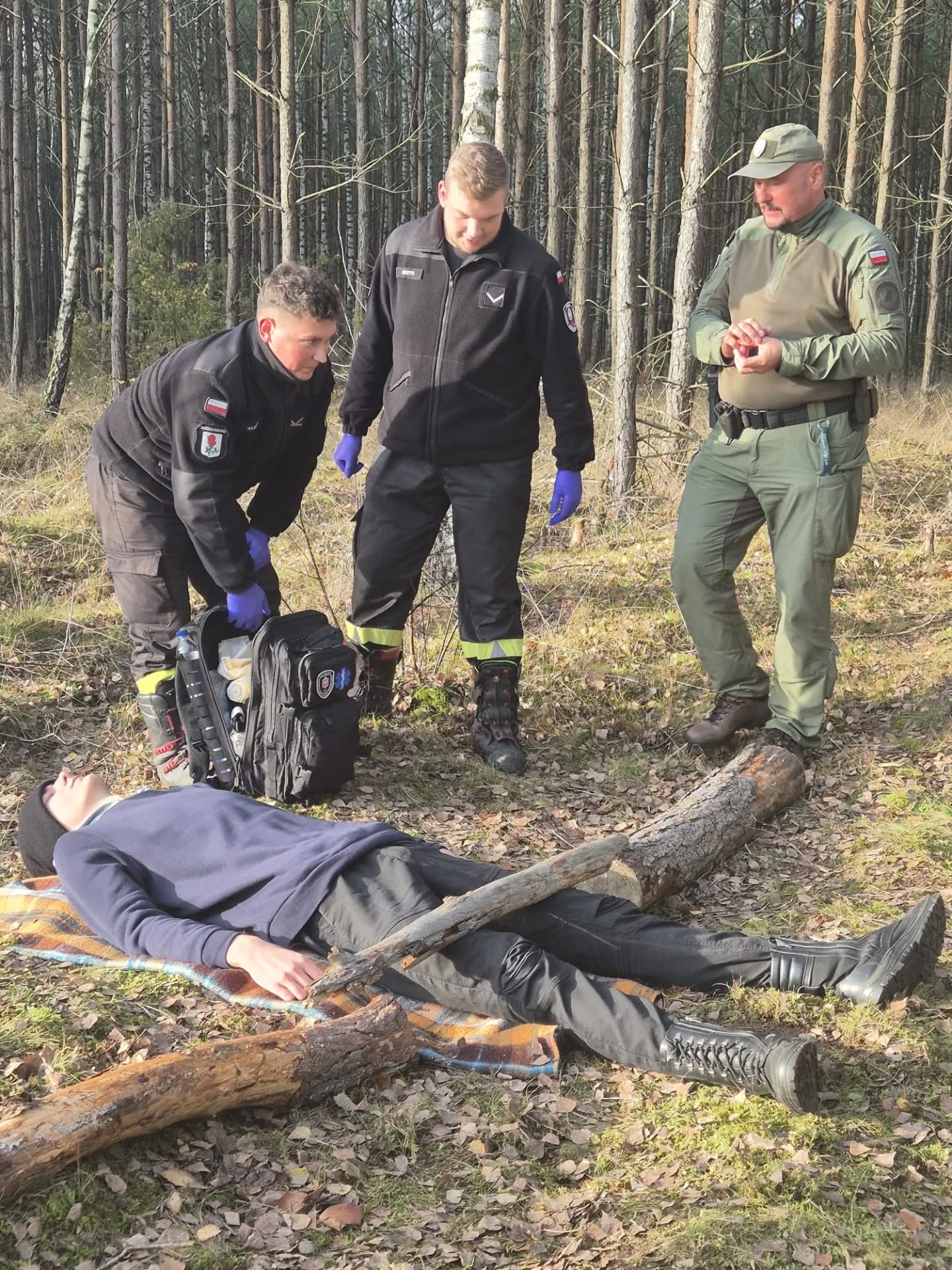 Zobaczcie co się działo! Na trasie 12 km napotkaliśmy 8 realnie upozorowanych scenek. W parku opatrywaliśmy złamanie otwarte po upadku z hulajnogi, w piwnicy na rynku usunęliśmy źródło napięcia i opatrywaliśmy montera po upadku z drabiny, opatrzeliśmt też postrzelonego na strzelnicy w zakładzie karnym, w lesie napotkaliśmy drwala przygniecionego wysokim drzewem, wybiegła nam na przeciw matka z nieprzytomnym niemowlakiem, a na deser opanowaliśmy próbę samobójczą.