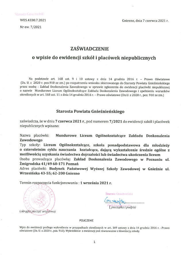 Statut Mundurowe Liceum Ogólnokształcące